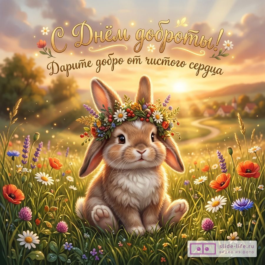 Скачайте бесплатную готовую открытку «Красивые открытки с Днём доброты с надписями и пожеланиями от души» прямо сейчас и отправьте ее на WhatsApp или другой мессенджер.