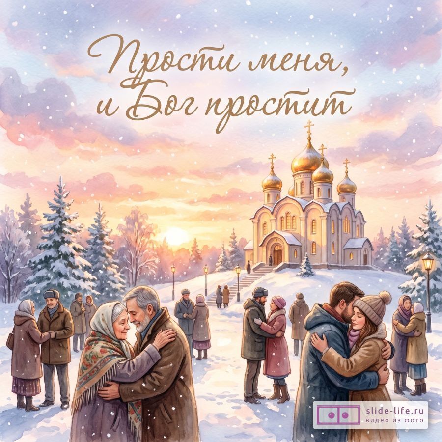 Скачайте бесплатную готовую открытку «Открытка с прощением: поздравление на Прощёное воскресенье для родных и близких» прямо сейчас и отправьте ее на WhatsApp или другой мессенджер.