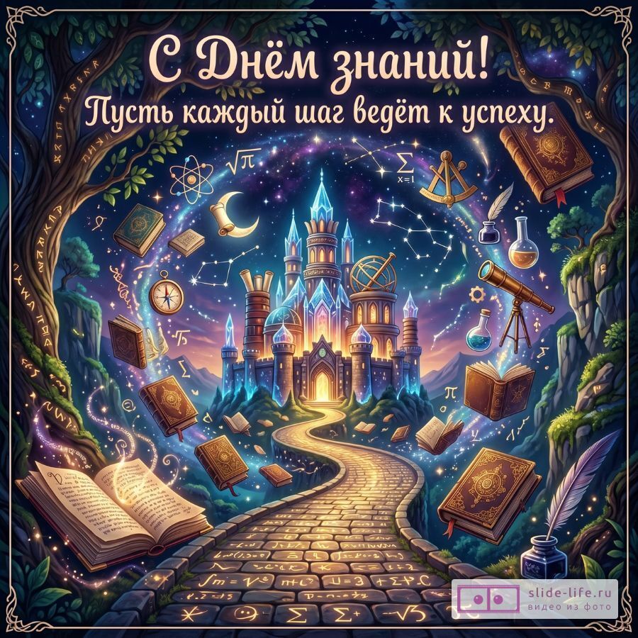 Скачайте бесплатную готовую открытку «Поздравление с 1 сентября — открытка с Днём знаний с тёплыми словами» прямо сейчас и отправьте ее на WhatsApp или другой мессенджер.