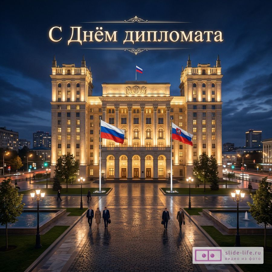 Скачайте бесплатную готовую открытку «С Днем дипломата — современная открытка с красивым текстом» прямо сейчас и отправьте ее на WhatsApp или другой мессенджер.