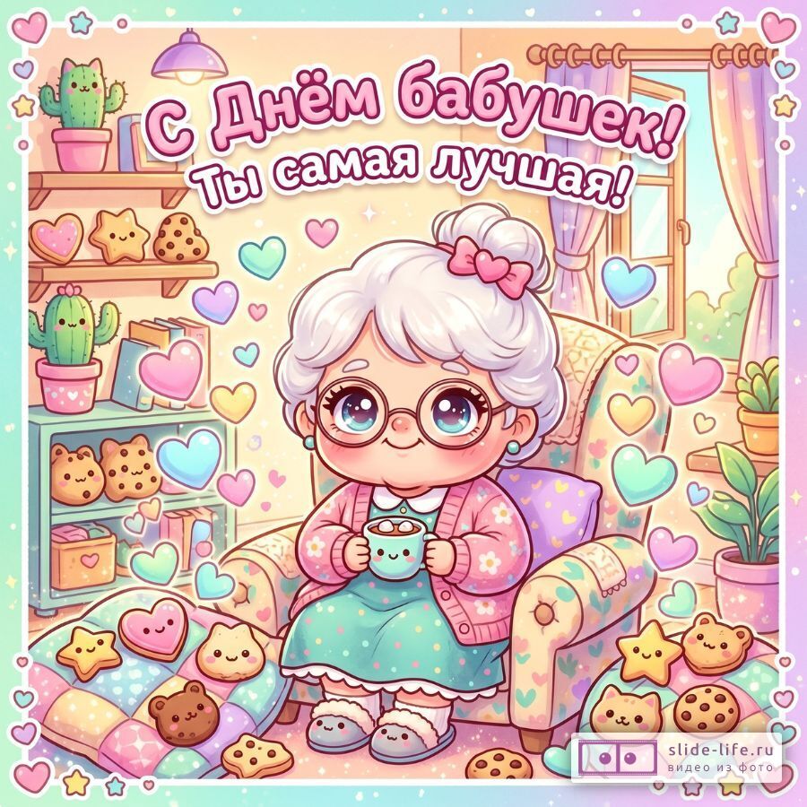 Скачайте бесплатную готовую открытку «С Днём бабушек картинки и открытки — поздравления для любимой бабушки» прямо сейчас и отправьте ее на WhatsApp или другой мессенджер.