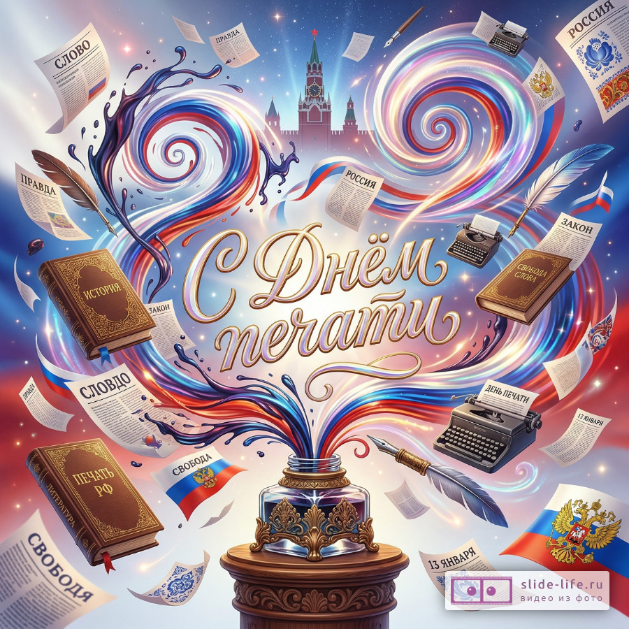Скачайте бесплатную готовую открытку «Поздравление с Днём российской печати — яркая праздничная картинка» прямо сейчас и отправьте ее на WhatsApp или другой мессенджер.