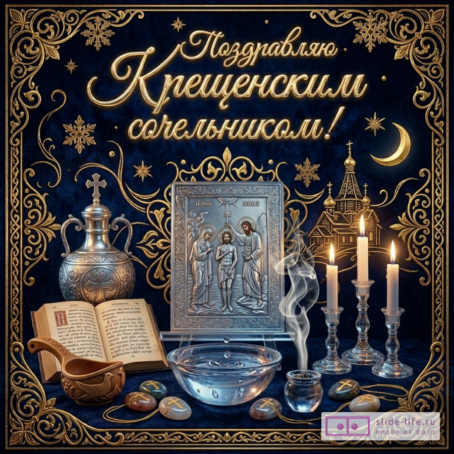 Скачайте бесплатную готовую открытку «Поздравление с Крещенским сочельником — открытка для родных и близких» прямо сейчас и отправьте ее на WhatsApp или другой мессенджер.