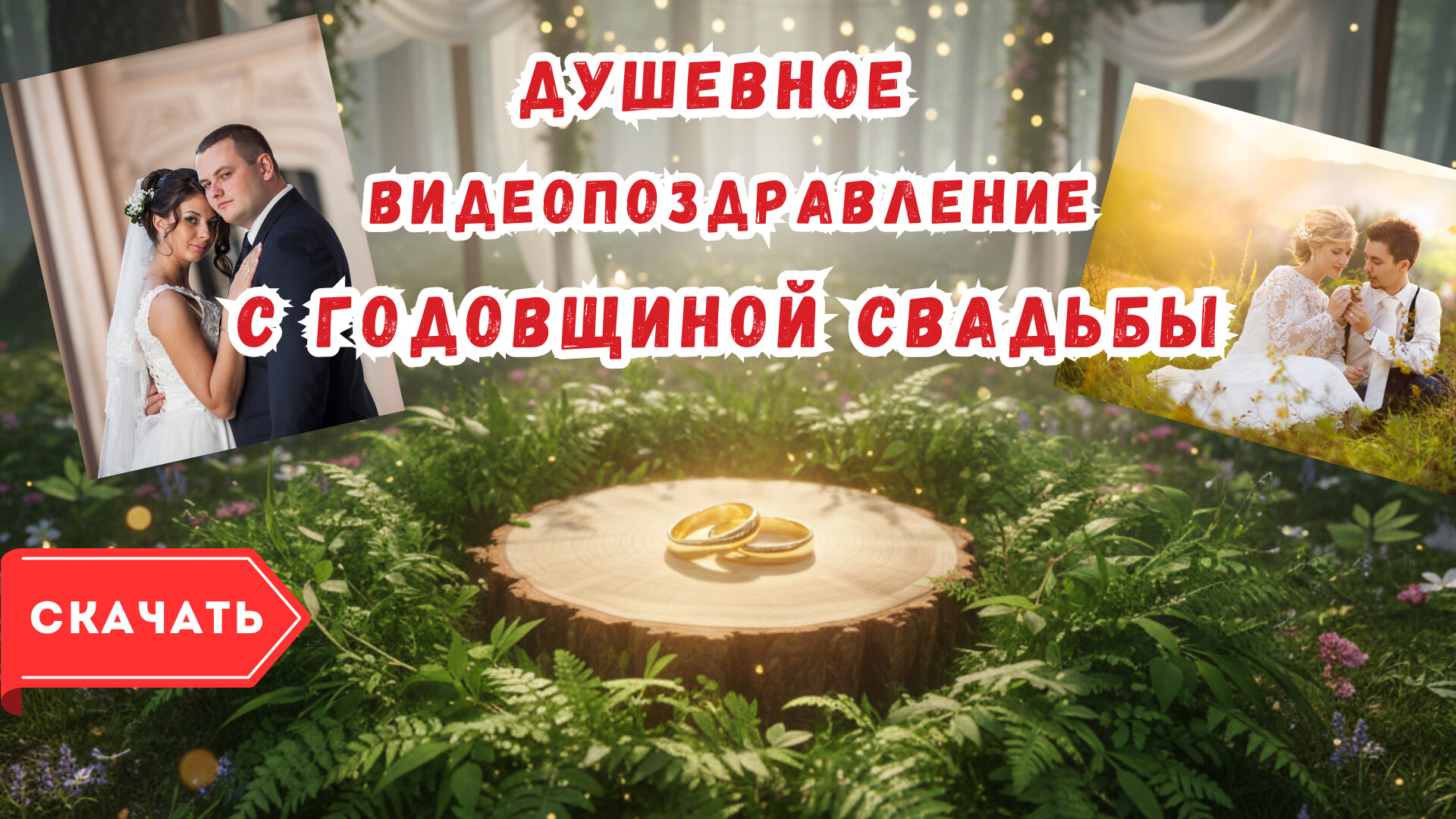 Скачайте бесплатное готовое видео «Душевное видео поздравление с годовщиной свадьбы» прямо сейчас и отправьте его на WhatsApp или любой другой мессенджер.