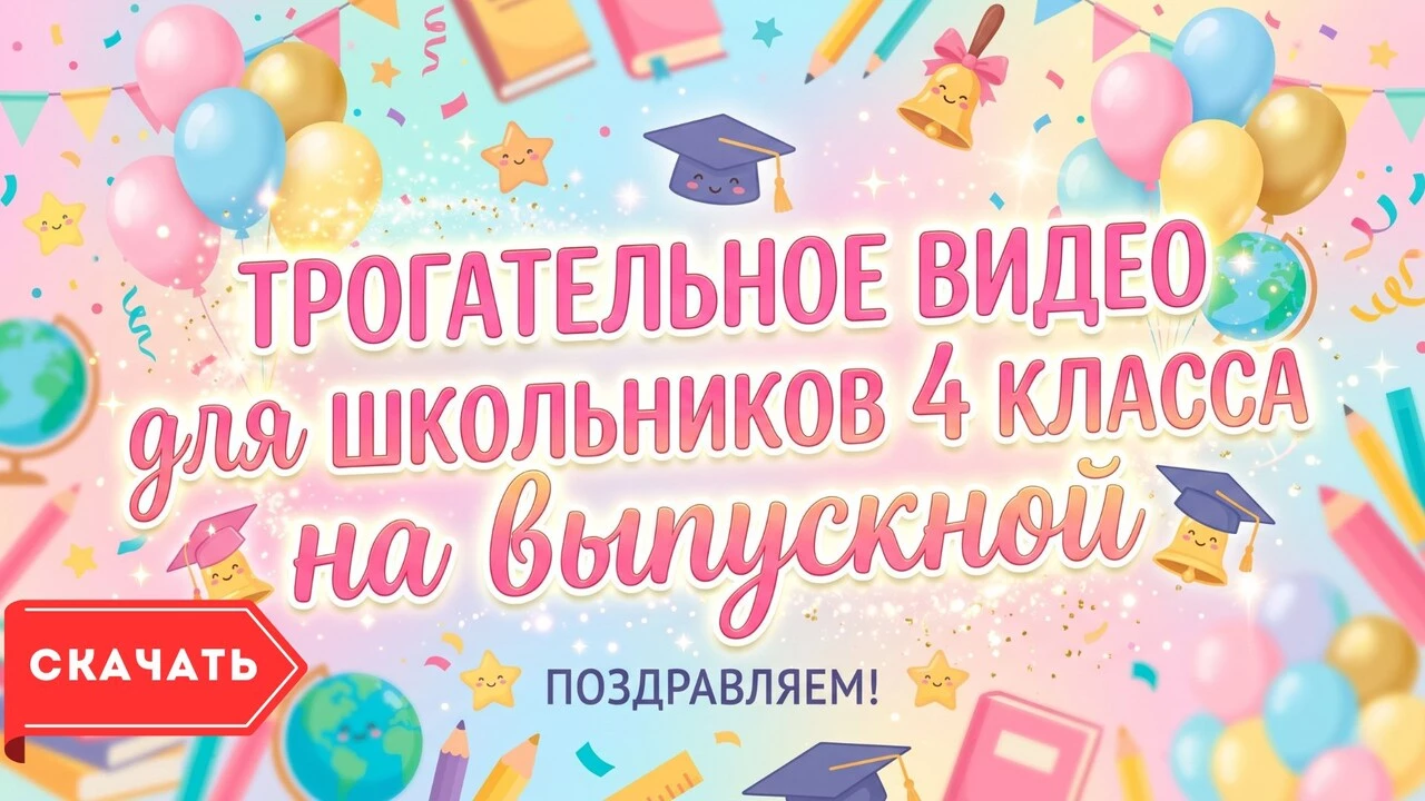 Скачайте бесплатное готовое видео «Поздравление с выпускным для 4 класса: трогательное видео для школьников» прямо сейчас и отправьте его на WhatsApp или любой другой мессенджер.