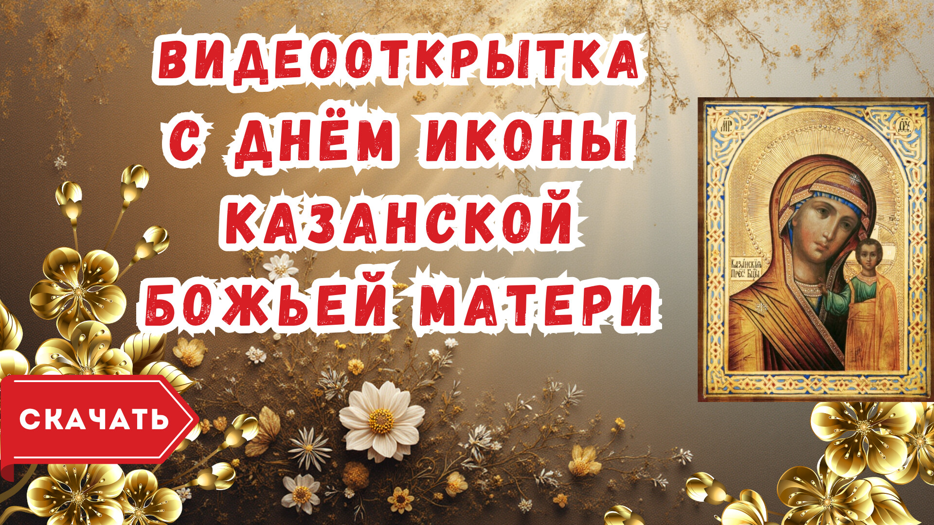 Скачайте бесплатное готовое видео «Видео открытка с Днём Казанской Иконы Божией Матери» прямо сейчас и отправьте его на WhatsApp или любой другой мессенджер.