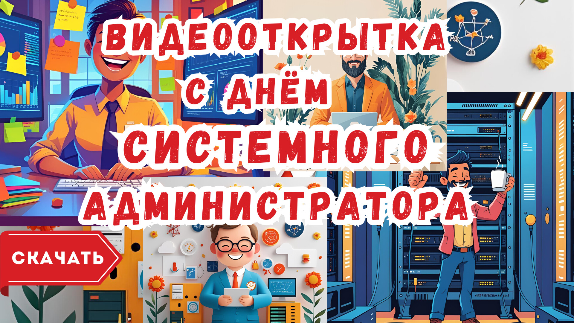 Скачайте бесплатное готовое видео «Видео открытка с Днём системного администратора» прямо сейчас и отправьте его на WhatsApp или любой другой мессенджер.