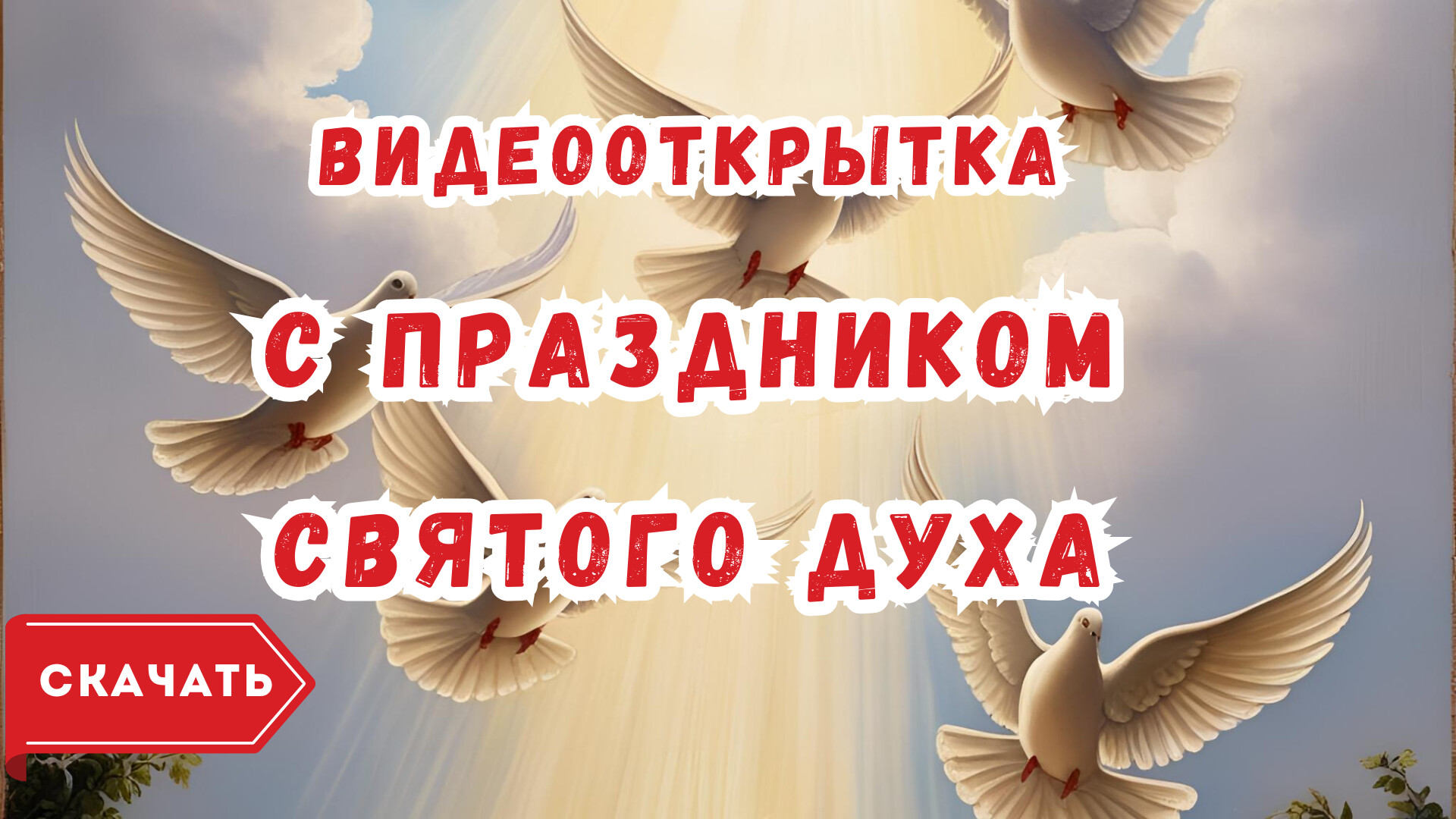 Скачайте бесплатное готовое видео «Видео открытка с Днём Святого Духа» прямо сейчас и отправьте его на WhatsApp или любой другой мессенджер.