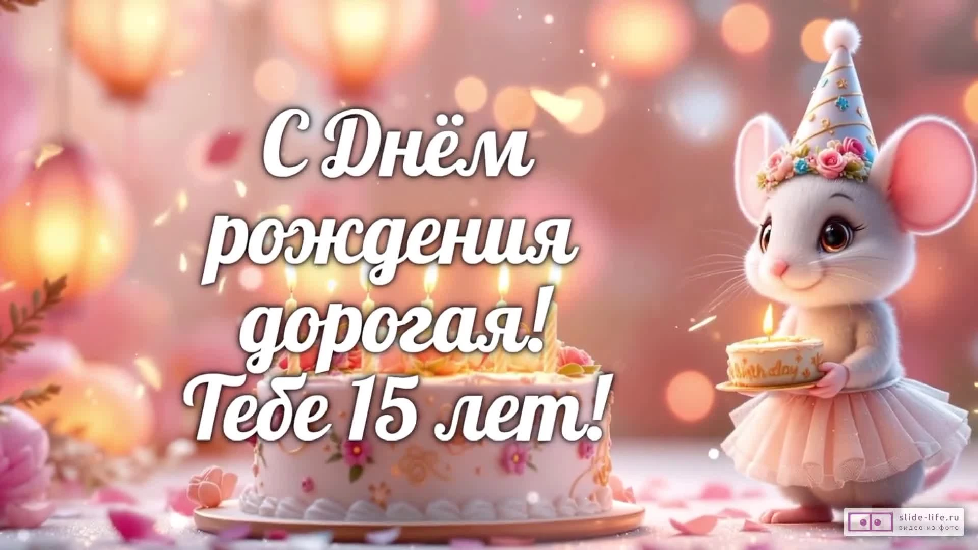 Скачайте бесплатное готовое видео «Современное видео поздравление с днем рождения девушке 15 лет» прямо сейчас и отправьте его на WhatsApp или любой другой мессенджер.