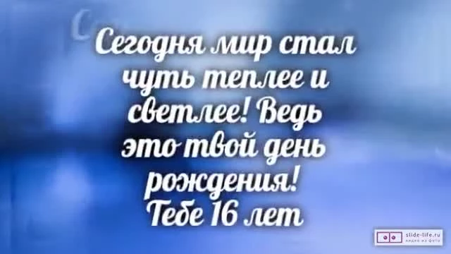 Скачайте бесплатное готовое видео «Слайд-шоу с днем рождения девушке 16 лет» прямо сейчас и отправьте его на WhatsApp или любой другой мессенджер.