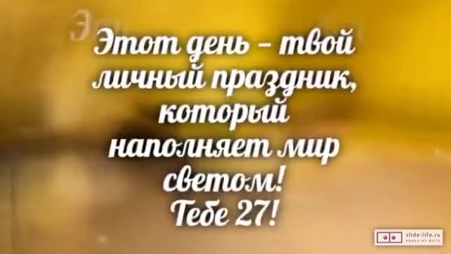 Скачайте бесплатное готовое видео «Слайд-шоу с днем рождения девушке 27 лет» прямо сейчас и отправьте его на WhatsApp или любой другой мессенджер.