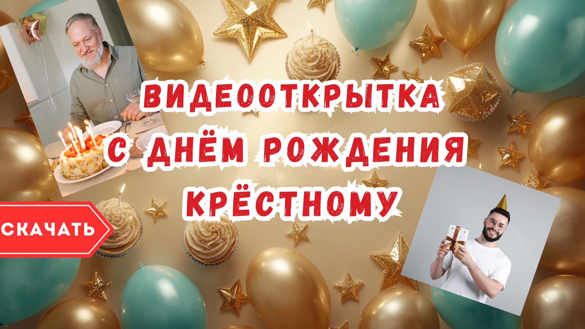 Скачайте бесплатное готовое видео «Видеооткрытка с днем рождения крестному» прямо сейчас и отправьте его на WhatsApp или любой другой мессенджер.