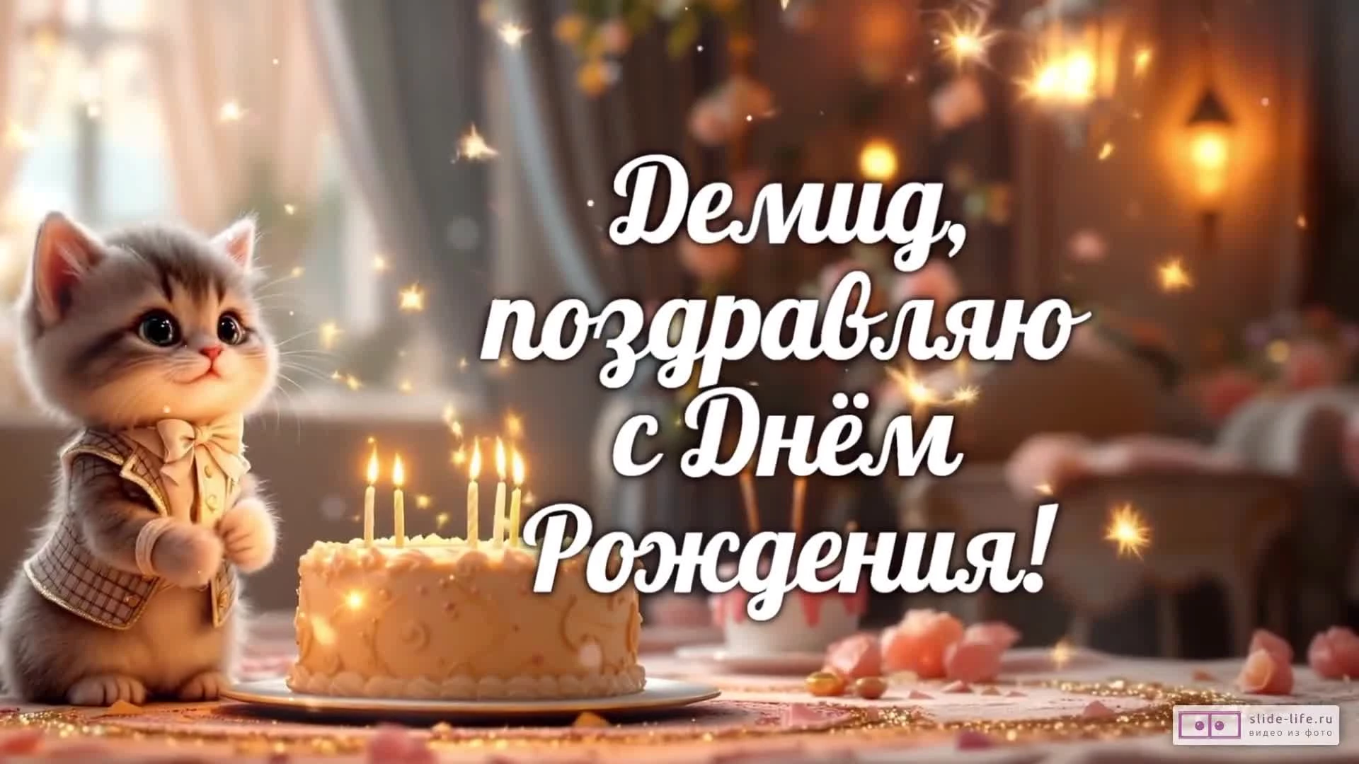 Скачайте бесплатное готовое видео «Демид, с Днем рождения! Видео поздравление» прямо сейчас и отправьте его на WhatsApp или любой другой мессенджер.