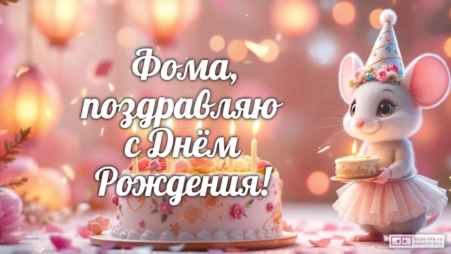 Скачайте бесплатное готовое видео «Фома, с Днем рождения! Видео поздравление» прямо сейчас и отправьте его на WhatsApp или любой другой мессенджер.