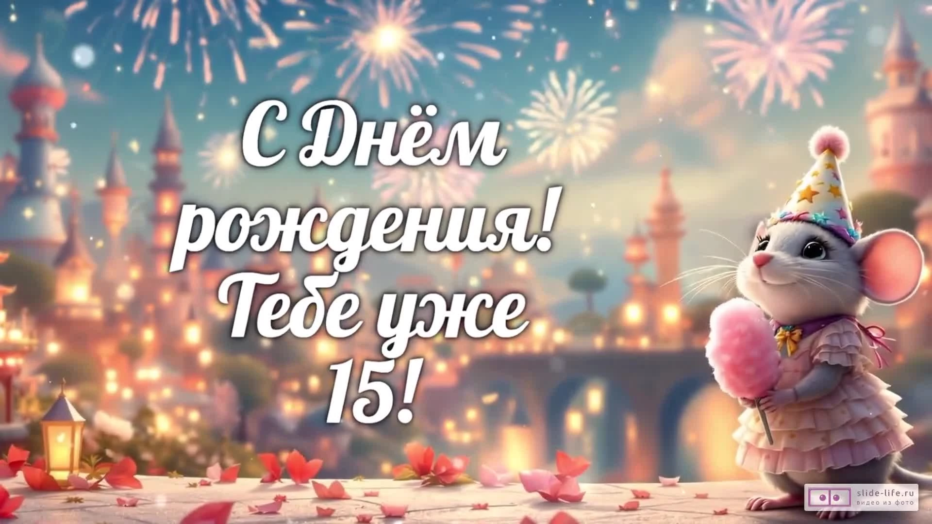 Скачайте бесплатное готовое видео «Современное видео поздравление с днем рождения парню 15 лет» прямо сейчас и отправьте его на WhatsApp или любой другой мессенджер.