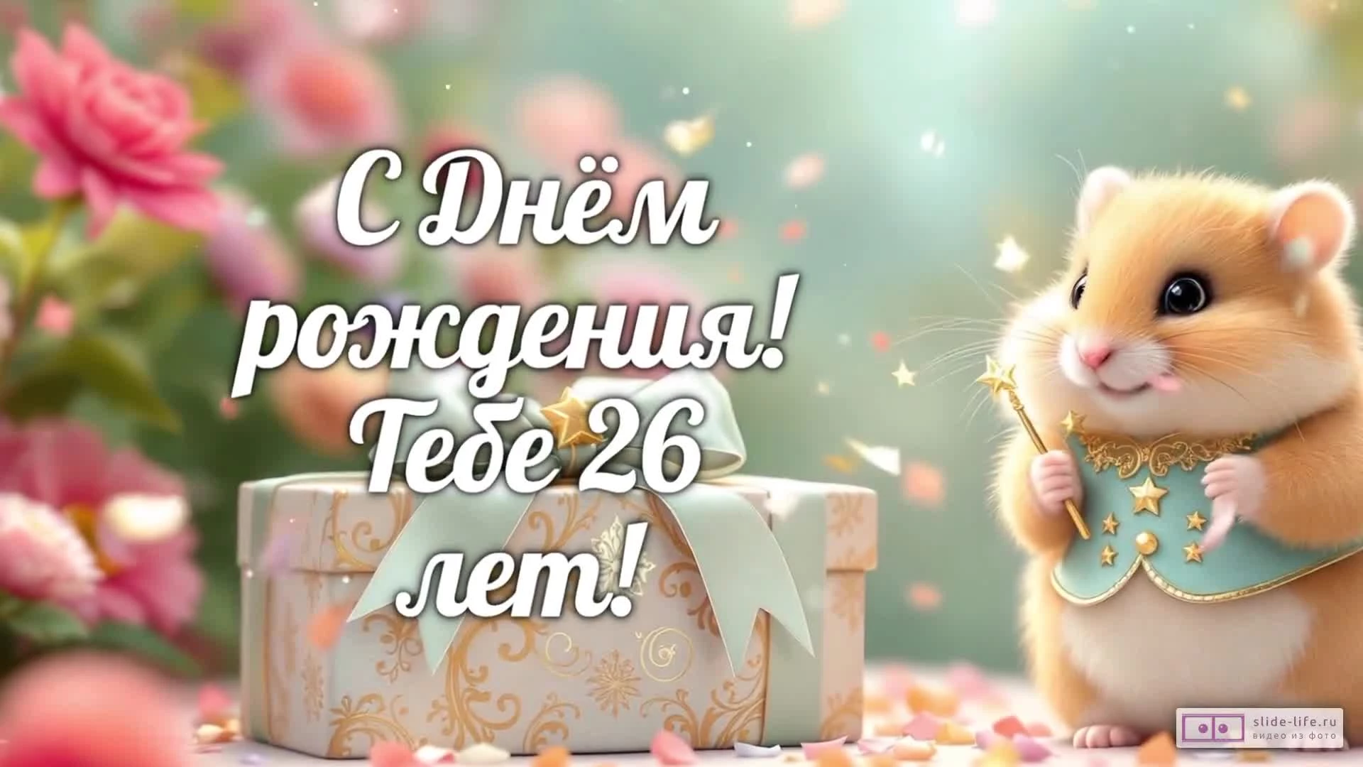 Скачайте бесплатное готовое видео «Современное видео поздравление с днем рождения мужчине 26 лет» прямо сейчас и отправьте его на WhatsApp или любой другой мессенджер.