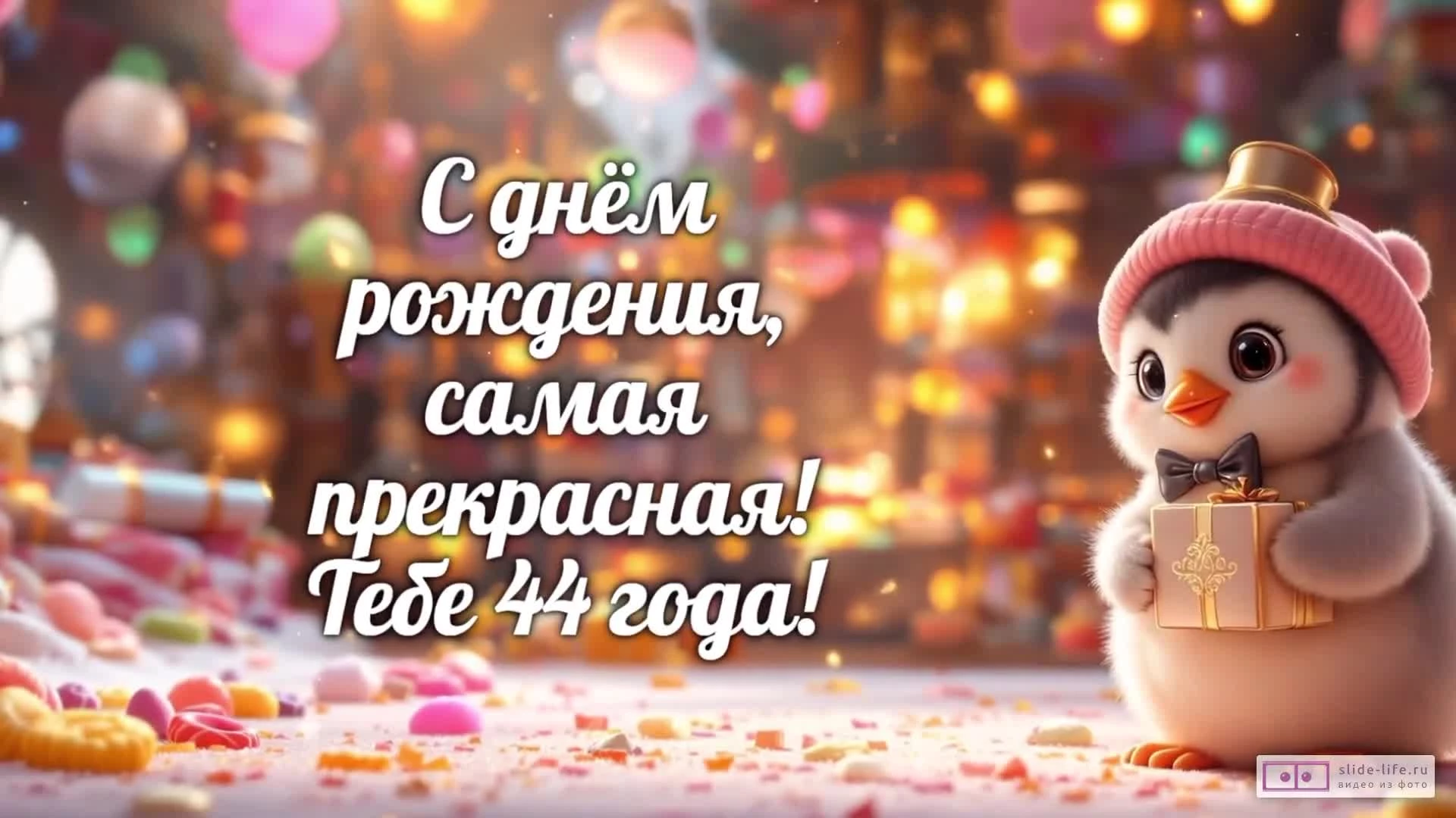 Скачайте бесплатное готовое видео «Современное видео поздравление с днем рождения женщине 44 года» прямо сейчас и отправьте его на WhatsApp или любой другой мессенджер.