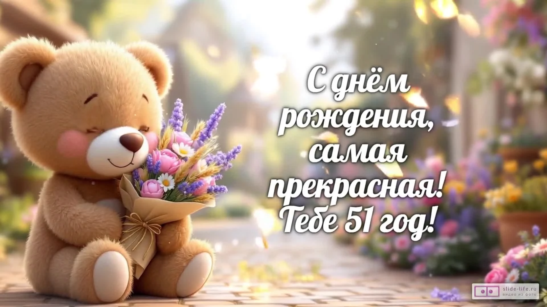 Скачайте бесплатное готовое видео «Современное видео поздравление с днем рождения женщине 51 год» прямо сейчас и отправьте его на WhatsApp или любой другой мессенджер.