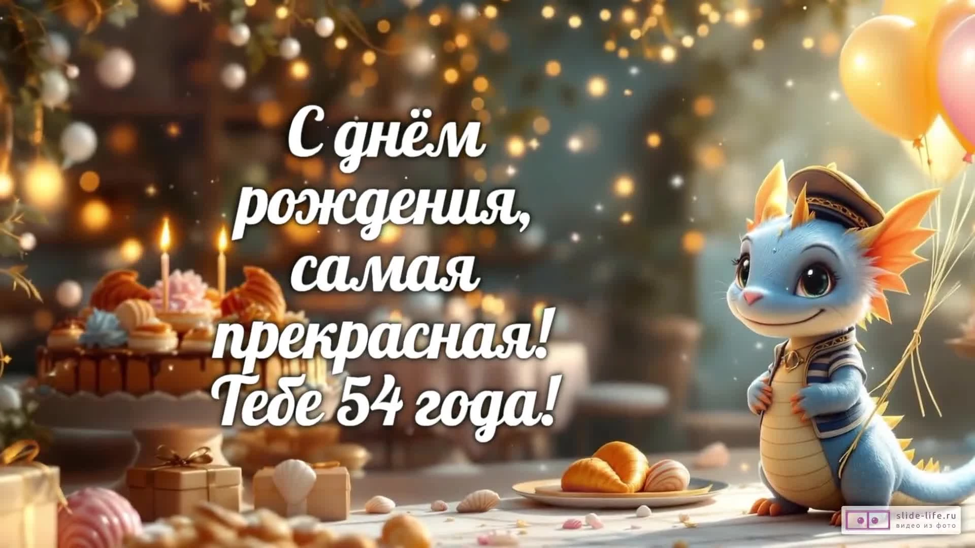 Скачайте бесплатное готовое видео «Современное видео поздравление с днем рождения женщине 54 года» прямо сейчас и отправьте его на WhatsApp или любой другой мессенджер.