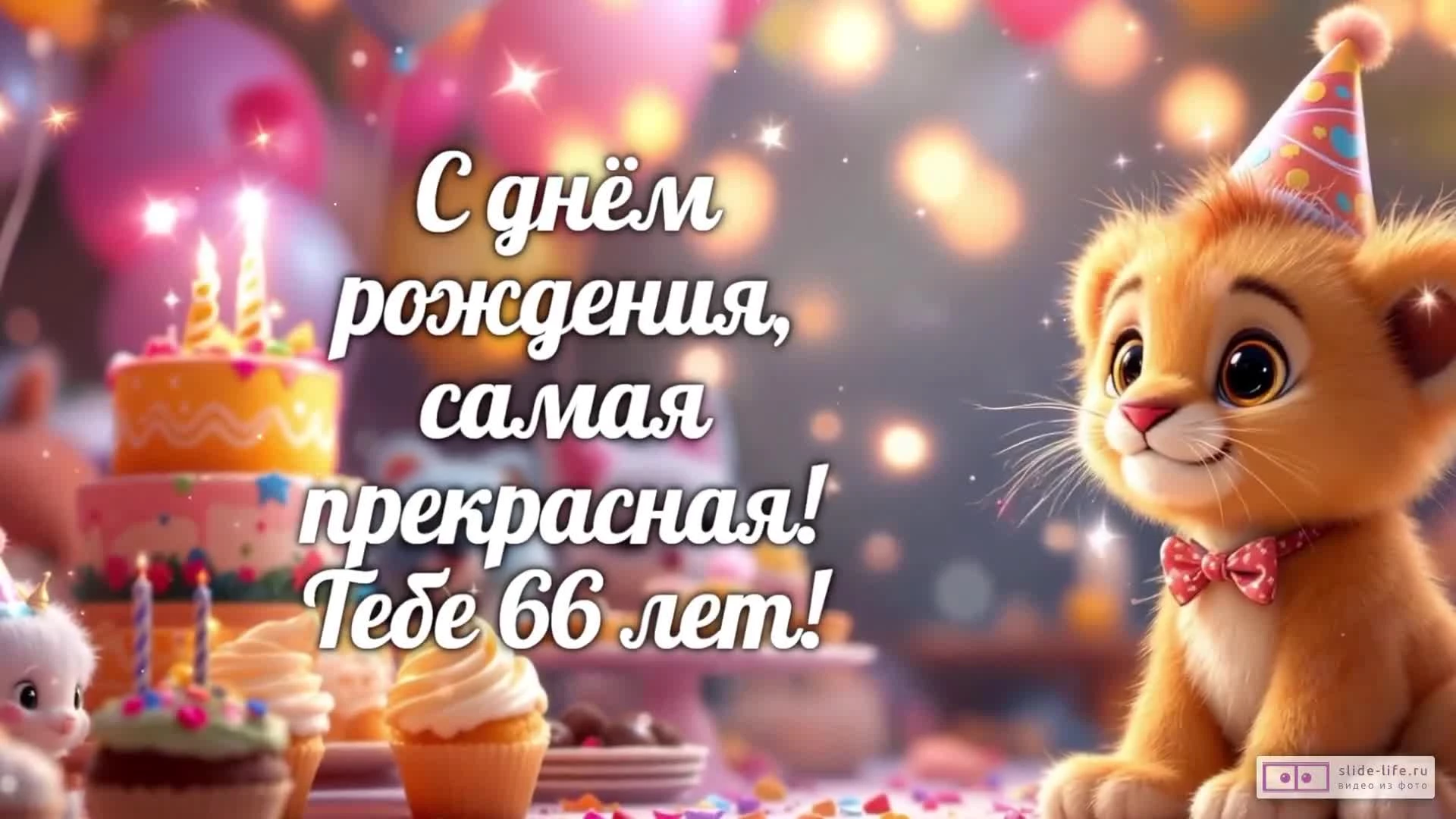 Скачайте бесплатное готовое видео «Современное видео поздравление с днем рождения женщине 66 лет» прямо сейчас и отправьте его на WhatsApp или любой другой мессенджер.