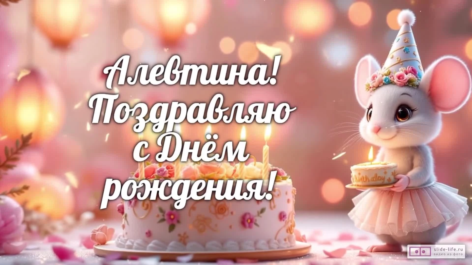 Скачайте бесплатное готовое видео «Алевтина, с Днем рождения! Видео поздравление» прямо сейчас и отправьте его на WhatsApp или любой другой мессенджер.