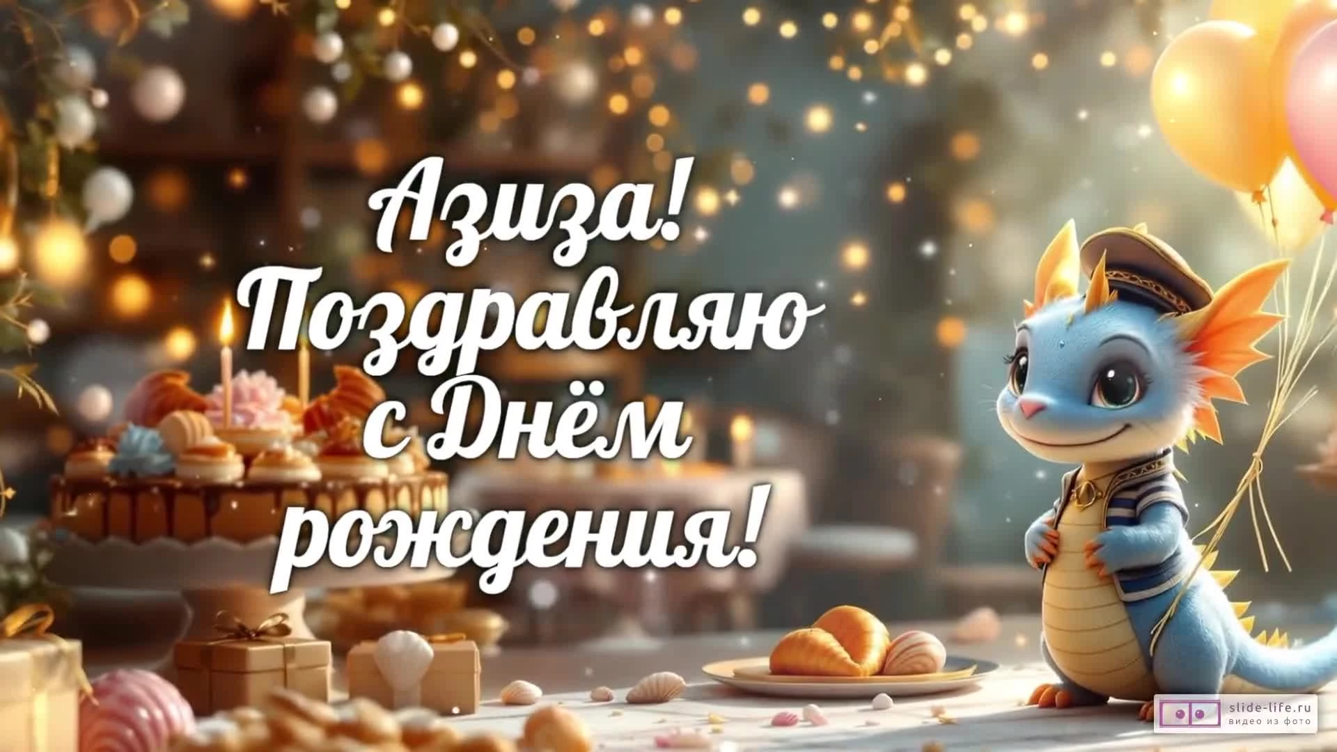 Скачайте бесплатное готовое видео «Азиза, с Днем рождения! Видео поздравление» прямо сейчас и отправьте его на WhatsApp или любой другой мессенджер.