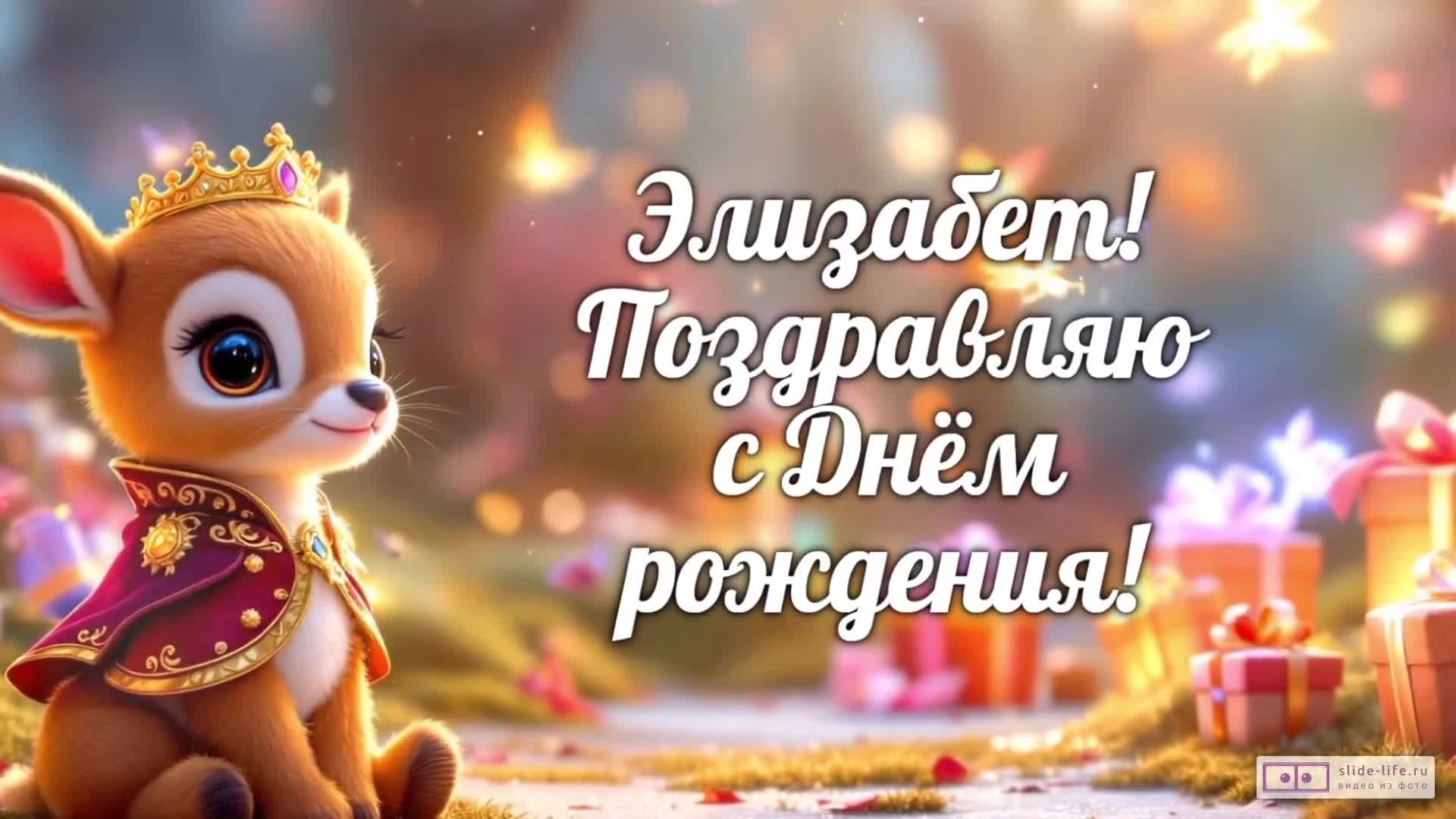 Скачайте бесплатное готовое видео «Элизабет, с Днем рождения! Видео поздравление» прямо сейчас и отправьте его на WhatsApp или любой другой мессенджер.