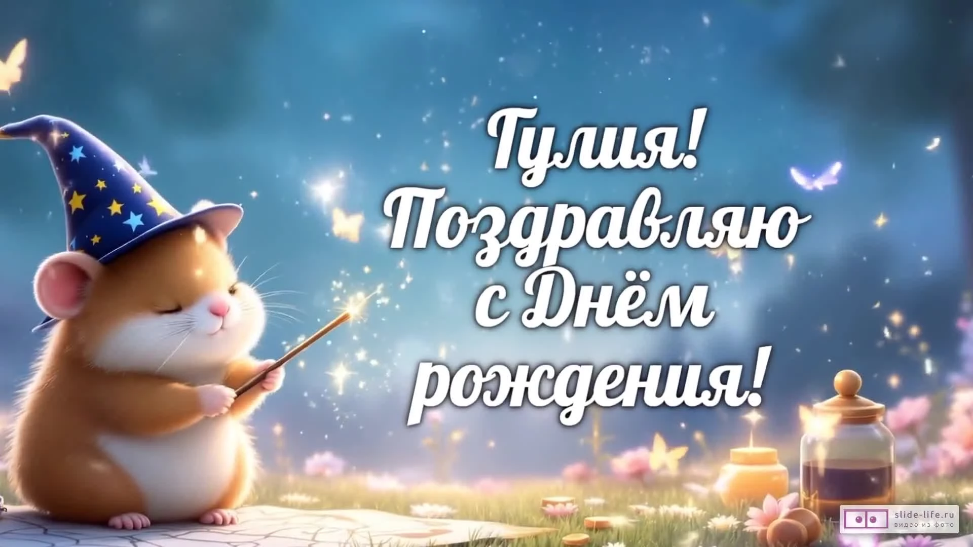 Скачайте бесплатное готовое видео «Гулия, с Днем рождения! Видео поздравление» прямо сейчас и отправьте его на WhatsApp или любой другой мессенджер.