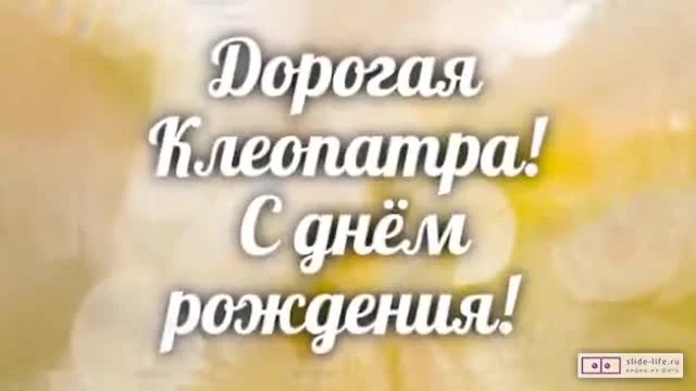 Скачайте бесплатное готовое видео «Клеопатра, с Днем рождения! Именное слайд-шоу» прямо сейчас и отправьте его на WhatsApp или любой другой мессенджер.