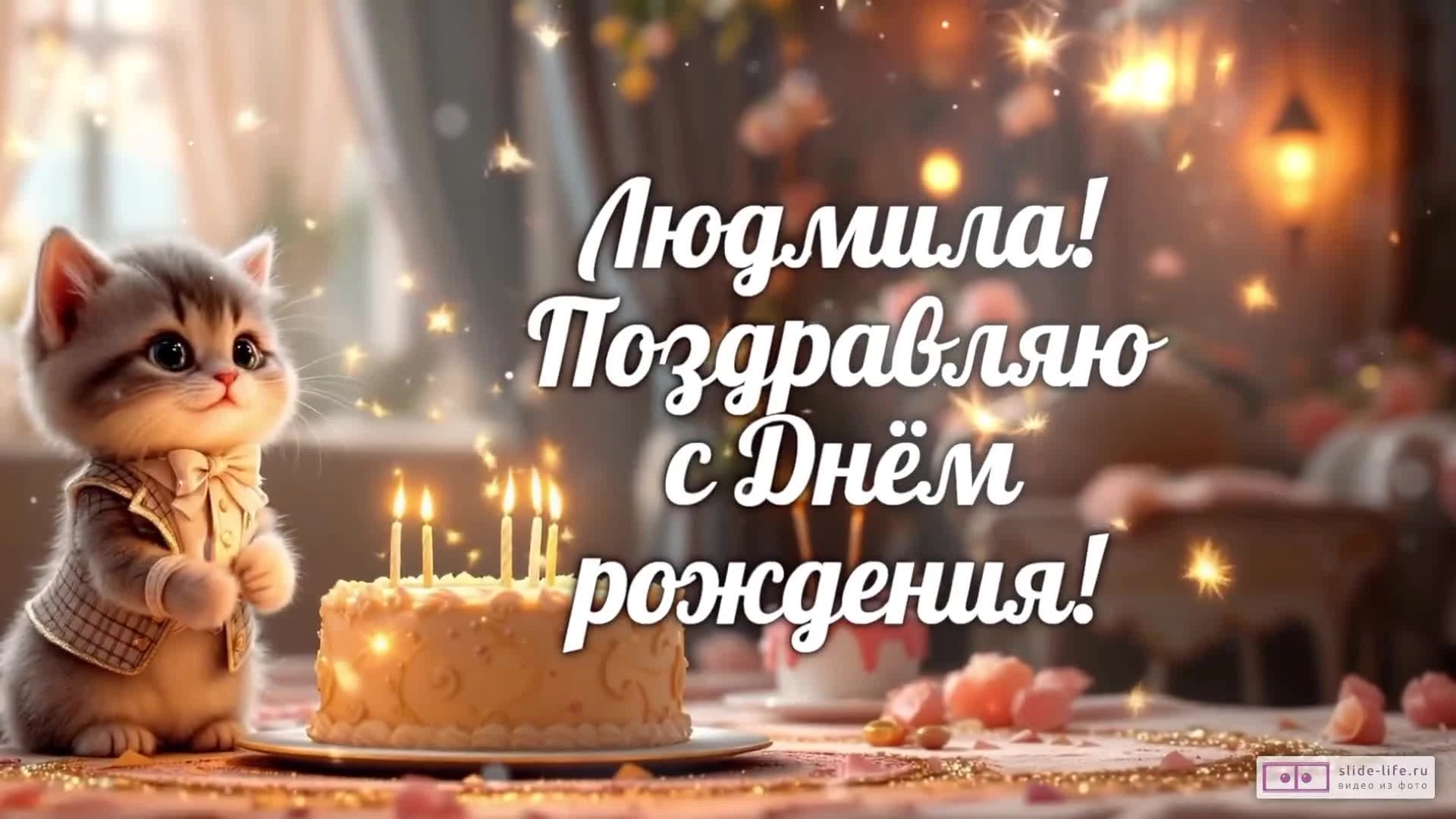 Скачайте бесплатное готовое видео «Людмила, с Днем рождения! Видео поздравление» прямо сейчас и отправьте его на WhatsApp или любой другой мессенджер.