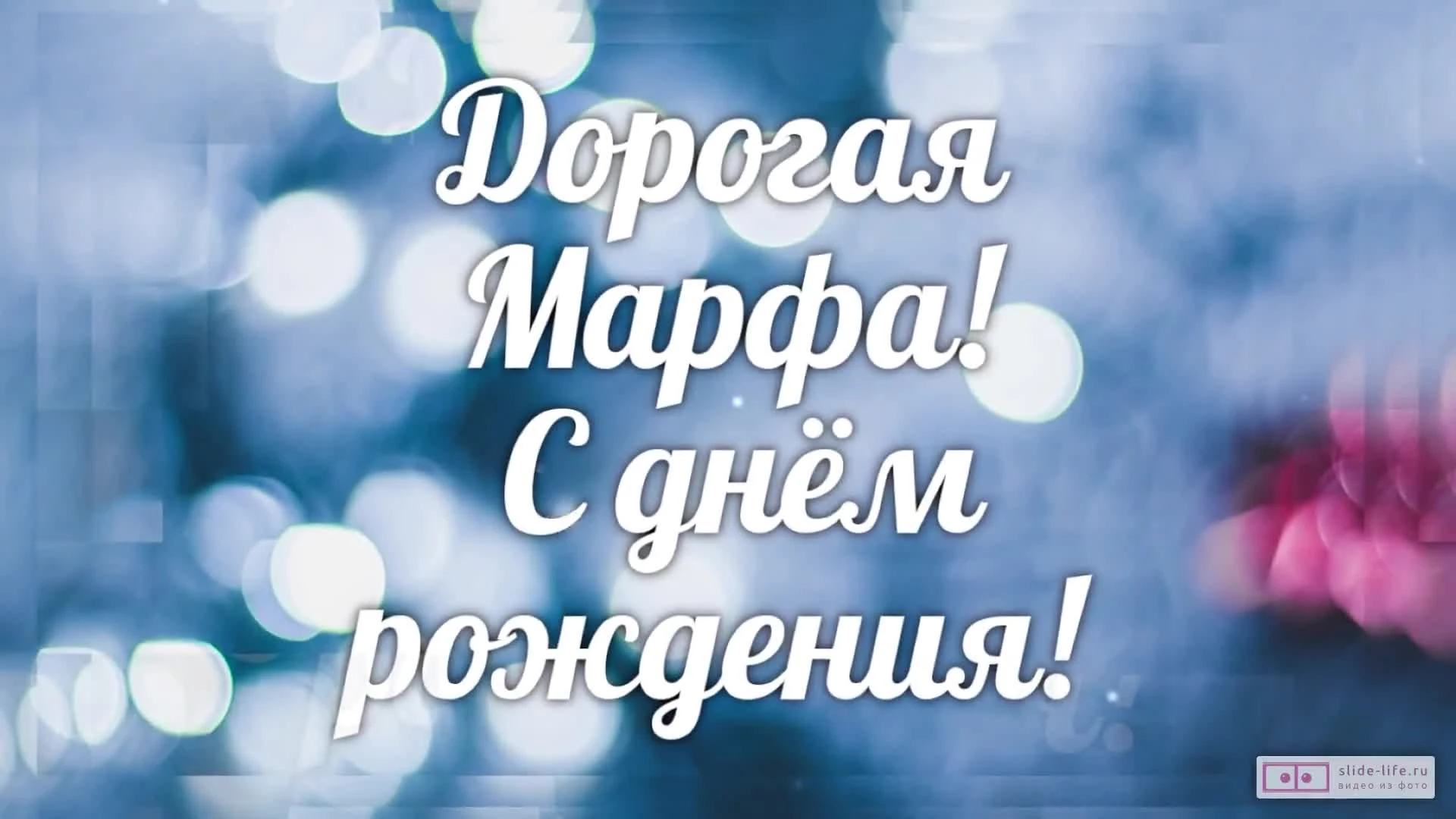 Скачайте бесплатное готовое видео «Марфа, с Днем рождения! Именное слайд-шоу» прямо сейчас и отправьте его на WhatsApp или любой другой мессенджер.