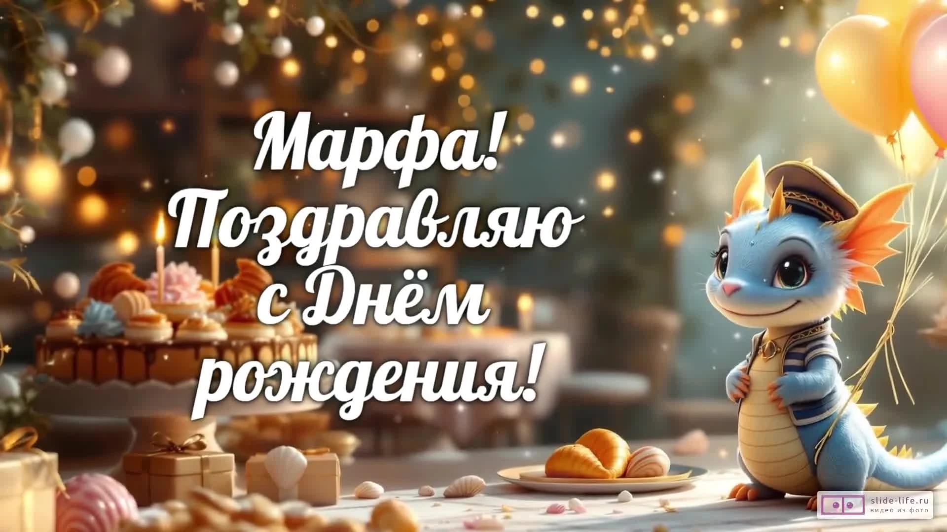 Скачайте бесплатное готовое видео «Марфа, с Днем рождения! Видео поздравление» прямо сейчас и отправьте его на WhatsApp или любой другой мессенджер.