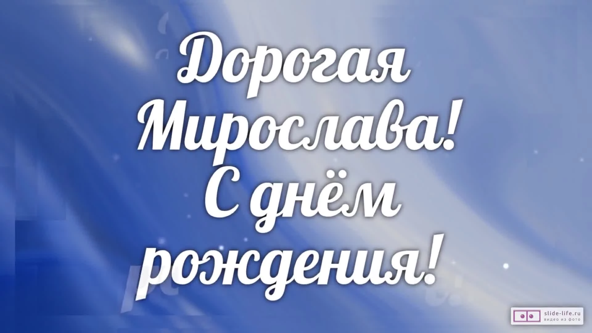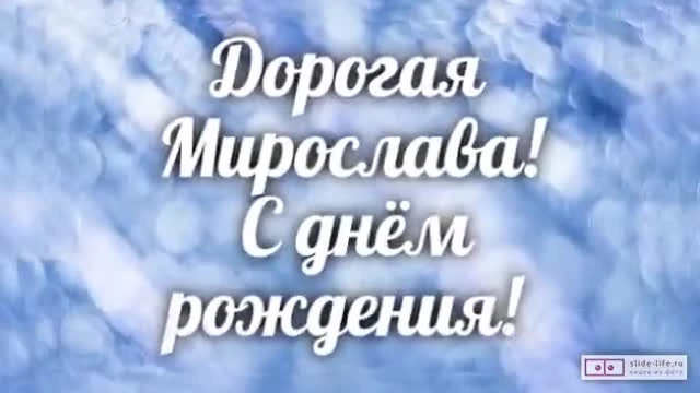 Скачайте бесплатное готовое видео «Мирослава, с Днем рождения! Именное слайд-шоу» прямо сейчас и отправьте его на WhatsApp или любой другой мессенджер.
