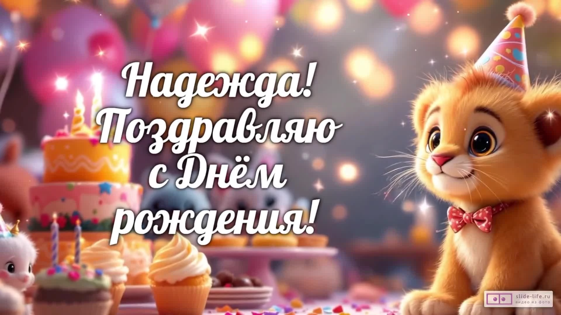 Скачайте бесплатное готовое видео «Надежда, с Днем рождения! Видео поздравление» прямо сейчас и отправьте его на WhatsApp или любой другой мессенджер.
