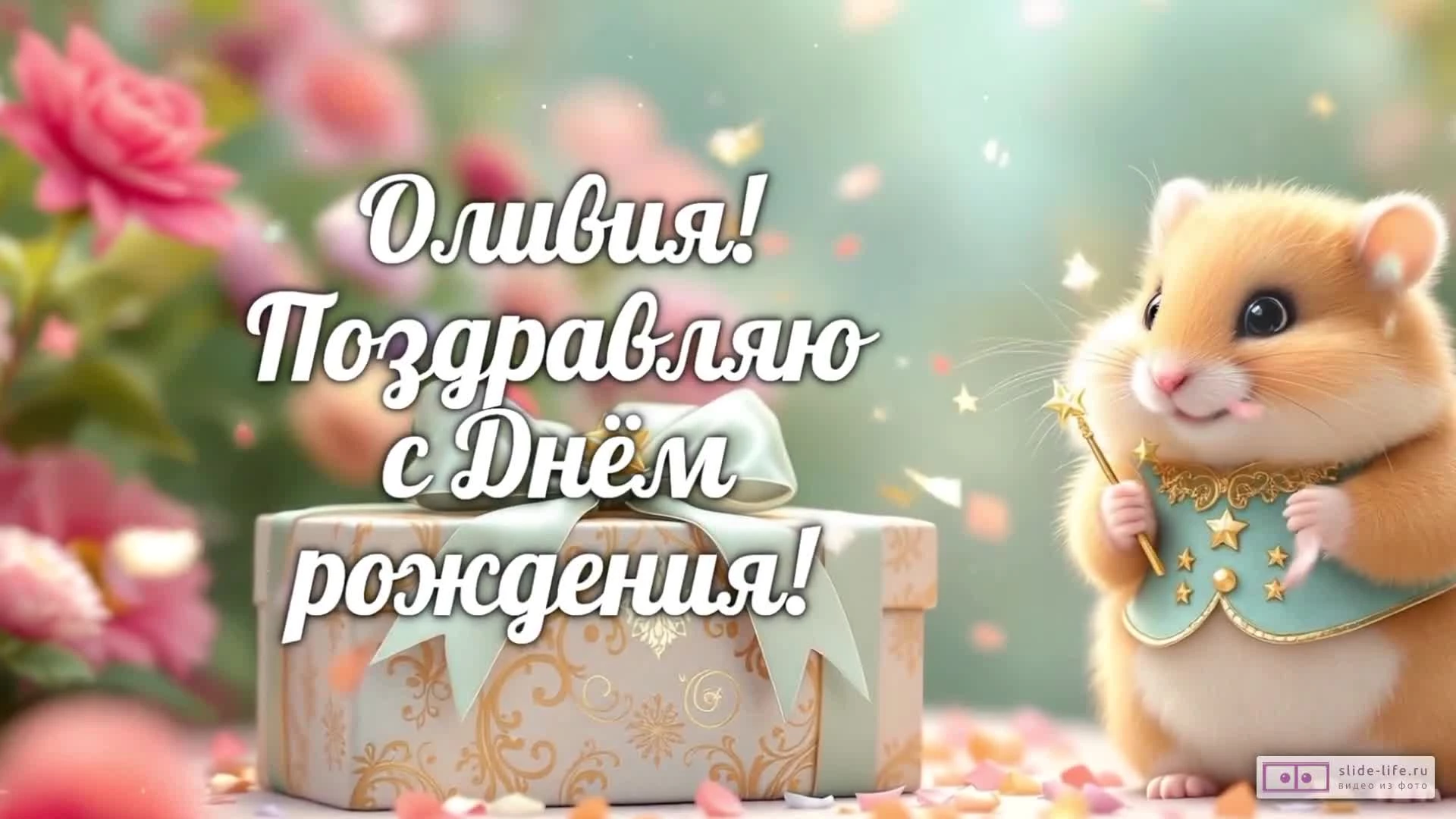 Скачайте бесплатное готовое видео «Оливия, с Днем рождения! Видео поздравление» прямо сейчас и отправьте его на WhatsApp или любой другой мессенджер.