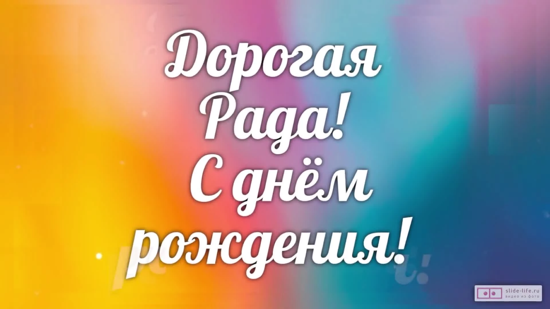 Скачайте бесплатное готовое видео «Рада, с Днем рождения! Именное слайд-шоу» прямо сейчас и отправьте его на WhatsApp или любой другой мессенджер.