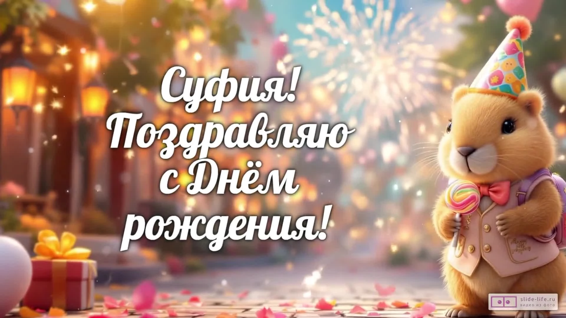 Скачайте бесплатное готовое видео «Суфия, с Днем рождения! Видео поздравление» прямо сейчас и отправьте его на WhatsApp или любой другой мессенджер.