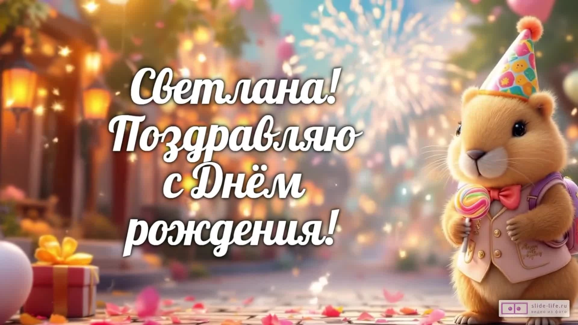 Скачайте бесплатное готовое видео «Светлана, с Днем рождения! Видео поздравление» прямо сейчас и отправьте его на WhatsApp или любой другой мессенджер.