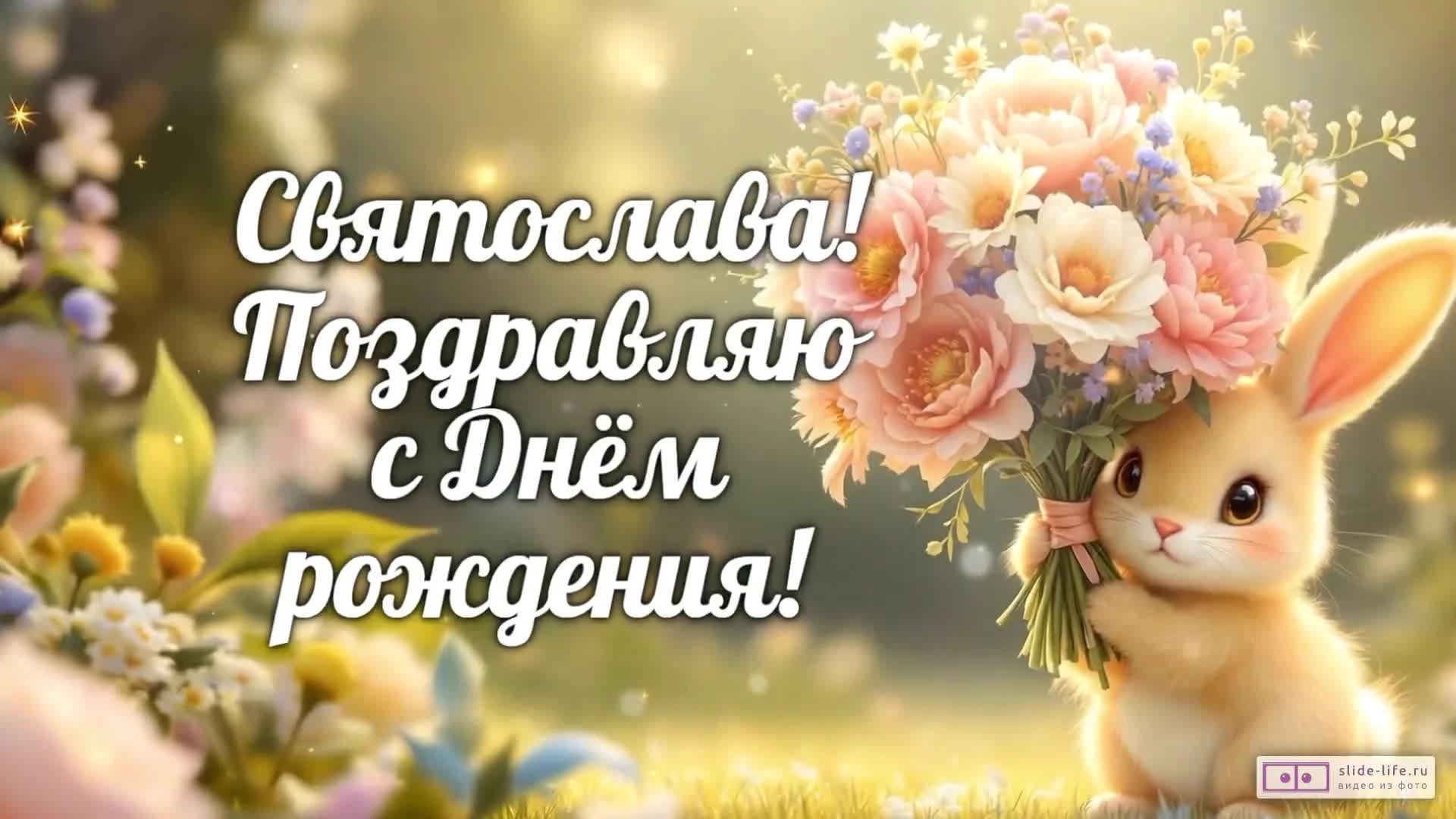 Скачайте бесплатное готовое видео «Святослава, с Днем рождения! Видео поздравление» прямо сейчас и отправьте его на WhatsApp или любой другой мессенджер.