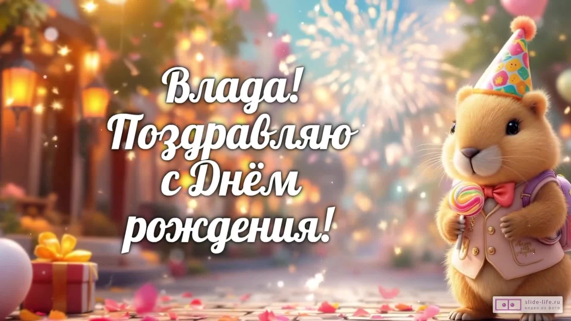 Скачайте бесплатное готовое видео «Влада, с Днем рождения! Видео поздравление» прямо сейчас и отправьте его на WhatsApp или любой другой мессенджер.