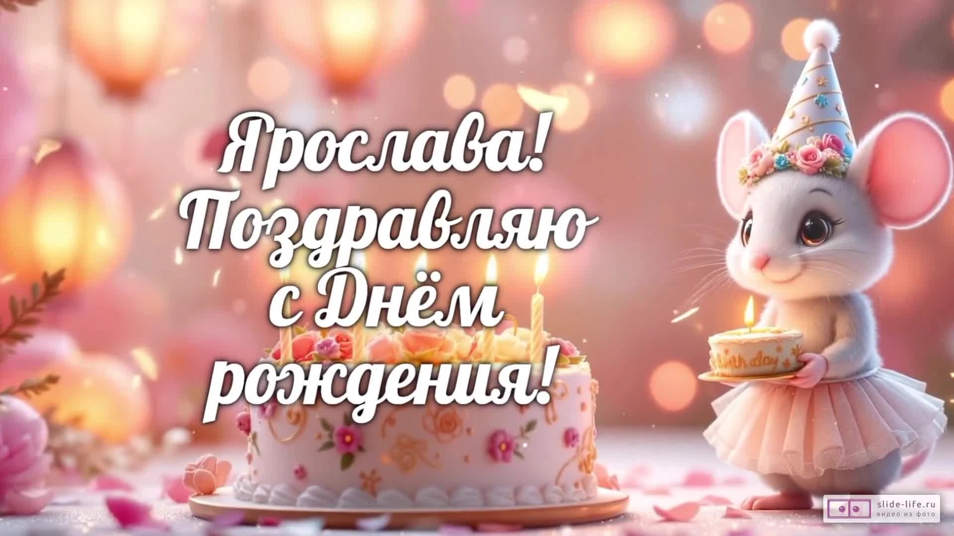 Скачайте бесплатное готовое видео «Ярослава, с Днем рождения! Видео поздравление» прямо сейчас и отправьте его на WhatsApp или любой другой мессенджер.