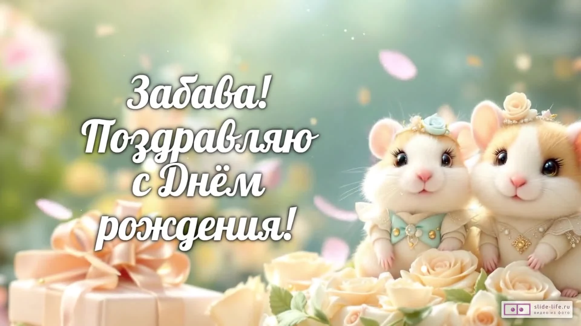 Скачайте бесплатное готовое видео «Забава, с Днем рождения! Видео поздравление» прямо сейчас и отправьте его на WhatsApp или любой другой мессенджер.