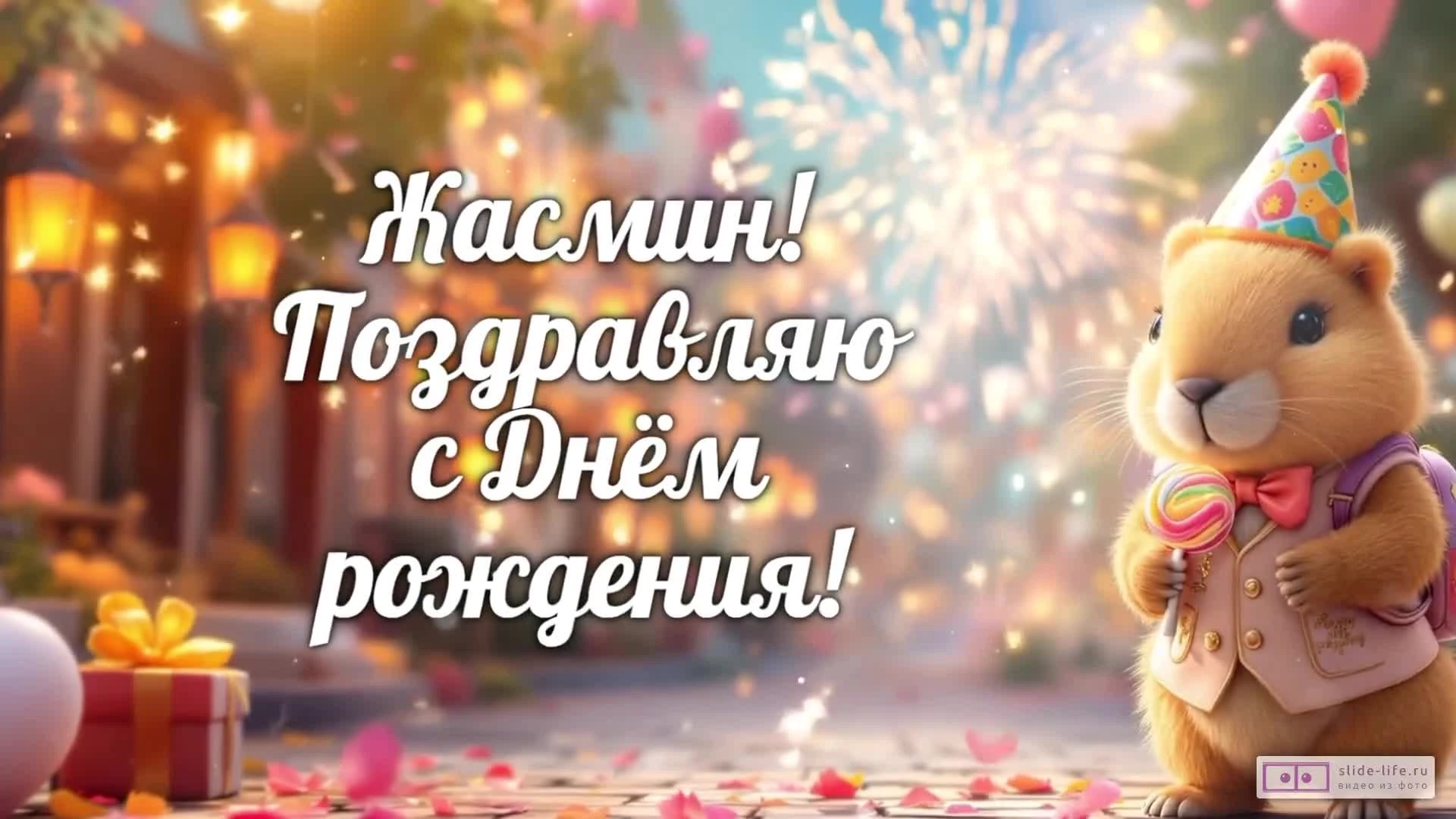 Скачайте бесплатное готовое видео «Жасмин, с Днем рождения! Видео поздравление» прямо сейчас и отправьте его на WhatsApp или любой другой мессенджер.