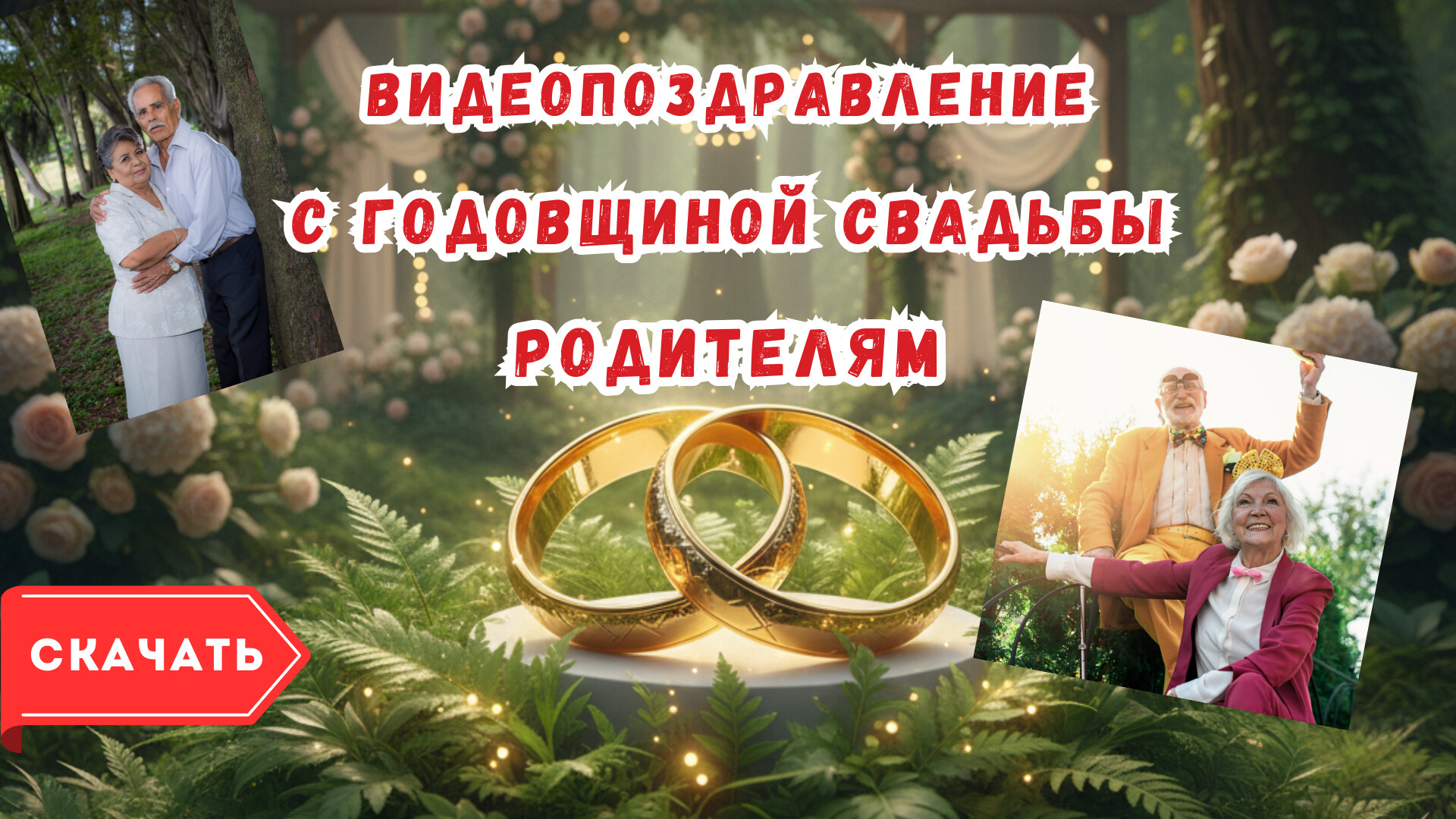 Скачайте бесплатное готовое видео «Видео поздравление с годовщиной свадьбы родителям» прямо сейчас и отправьте его на WhatsApp или любой другой мессенджер.