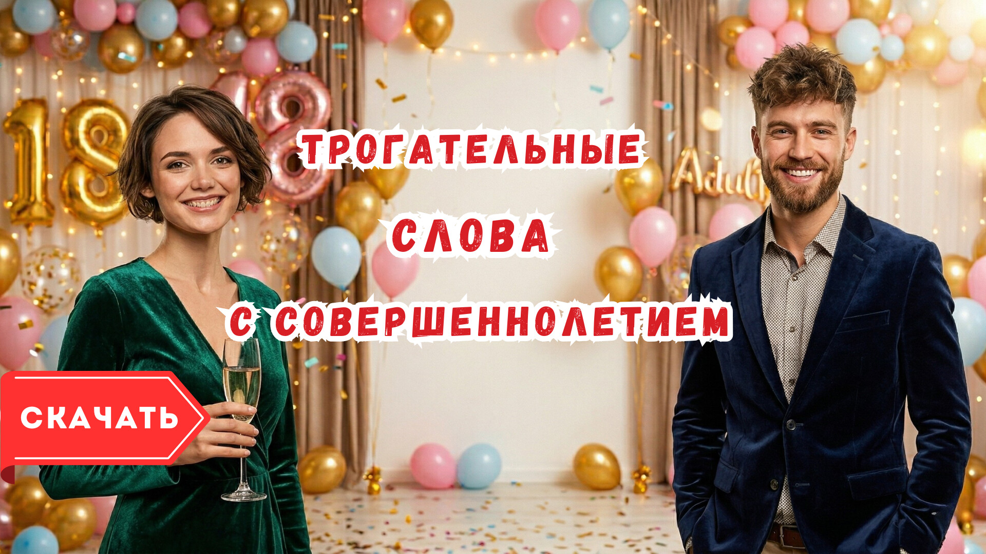 Скачайте бесплатное готовое видео «Поздравление с 18-летием Трогательные слова на совершеннолетие» прямо сейчас и отправьте его на WhatsApp или любой другой мессенджер.